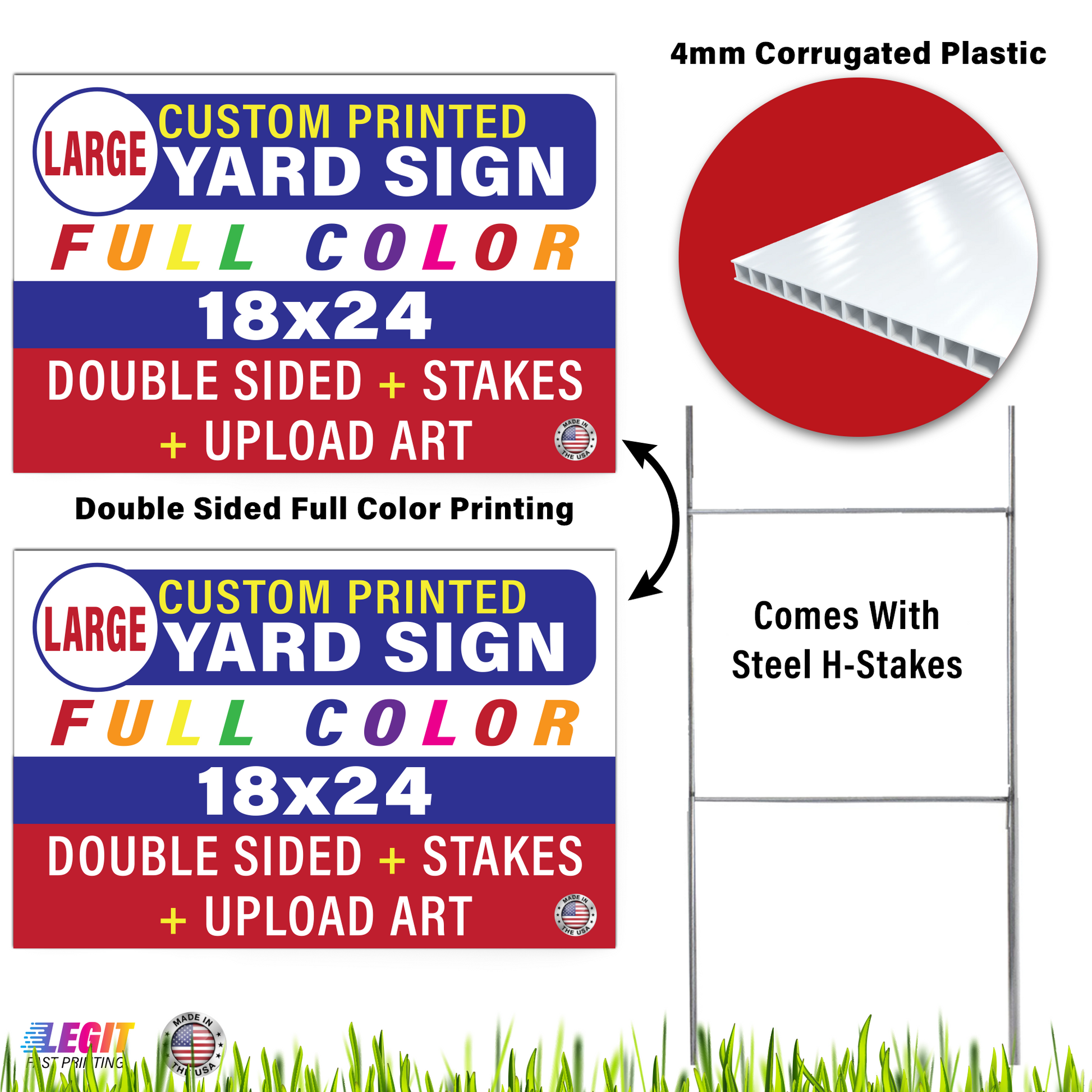 All yard signs are printed on demand at our shop in Kansas. We ship with UPS or USPS Priority Mail. We print items the same or the next business day and send the order tracked, so you get the fastest delivery of your new custom yard signs.